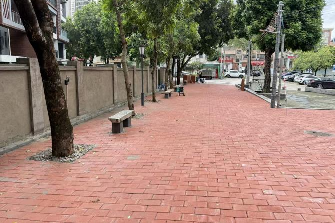 濠三小区君悦豪园退让地,此前被临时当作建筑材料堆场使用,各类建材杂乱无序地堆放,与周边住宅小区的风貌极不协调。工作组对该地块进行规范整理,清理掉多余的建材,种植草坪与景观灌木,并设置休闲座椅,使这片“临时堆场”成功变身“整洁休闲空间”。